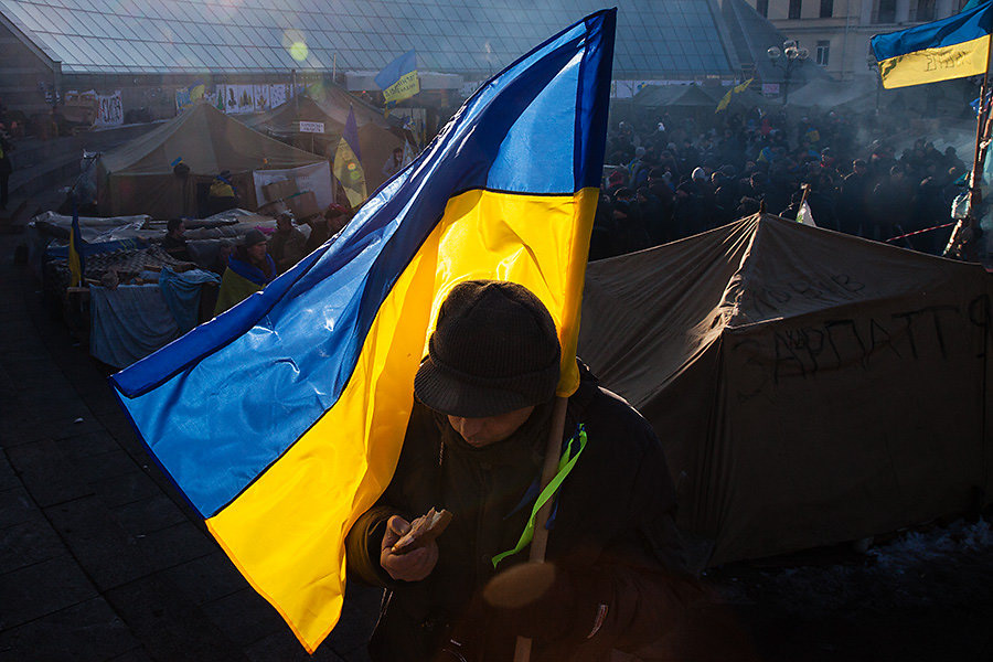 Euromaidan is a wave of demonstrations, civil unrest and clashes with riot police on Maidan (Independent square) and nearby in the center of the Kyiv, Ukraine and all over other big cities of Ukraine, which began on the night of 21 November 2013 with pro-European demonstration and rapidly developed into anti-government protest and revolution. Thousands of people gathered each day over the months demanding resignation of the President Viktor Yanukovych, his government and early elections. Several buildings in the center of the Kyiv has been taken over by protesters where they slept and rested. The protests reached a climax in the middle of the February 2014. During three months of demonstrations and clashes Mikhail Palinchak photographed Maidan in Kyiv, life and people on it. In three months at least 115 people were killed and more than 500 injured, the house of Trade Unions and few small shops were burnt.
